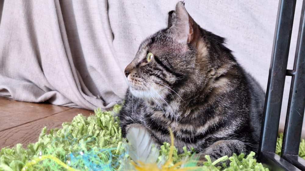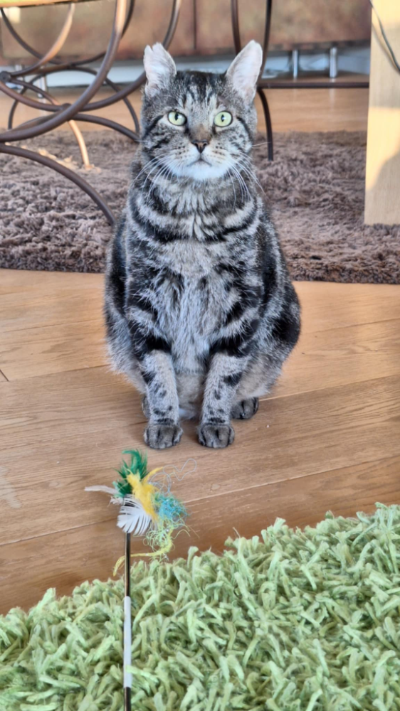 J’apprécie les câlins, mais pas trop longtemps car ce que j’aime par-dessus tout c’est jouer : les balles, le plumeau et la canne à pêche sont mes alliés !