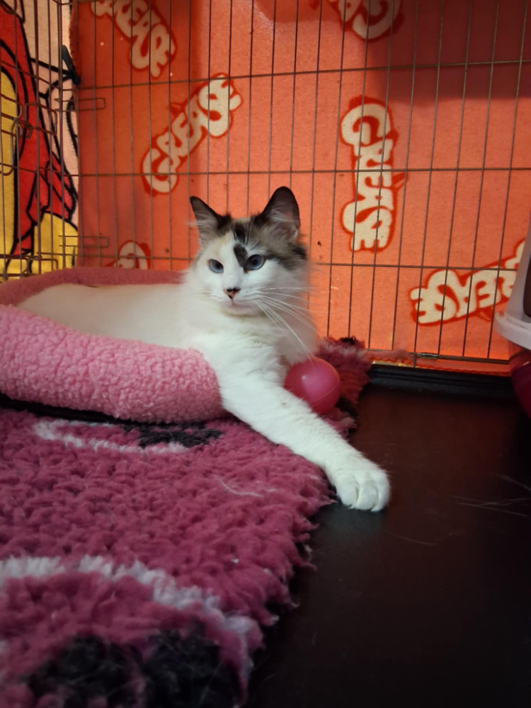 Je suis une petite chatte au regard profond, typée siamoise, avec des yeux d’un bleu presque irréel qui semblent raconter mille histoires...