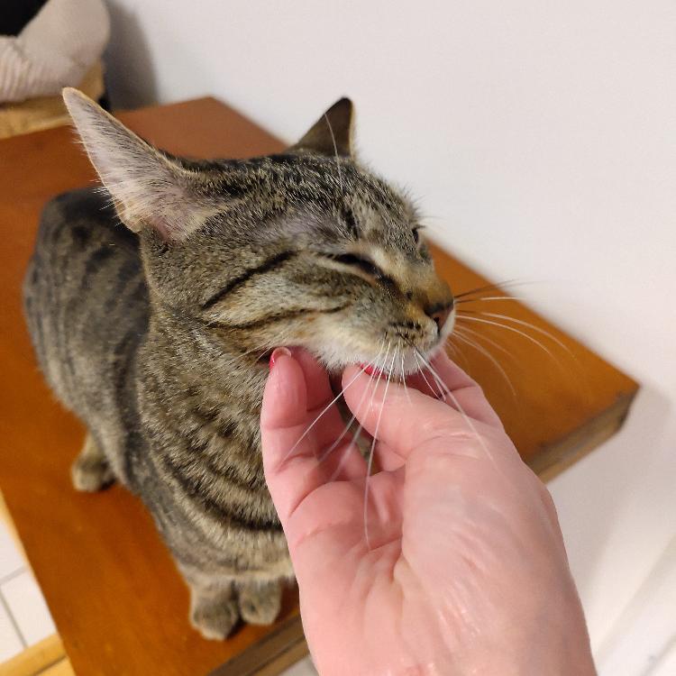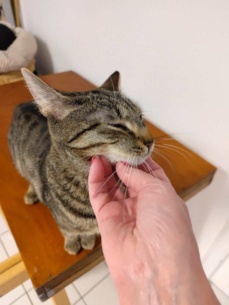 Et comme vous avez vu dans les critères, je ne suis pas très difficile. Je suis très gentille et câline. Je viens demander des caresses et si, par hasard, il y a quelque chose à manger, ce n'est pas plus mal.