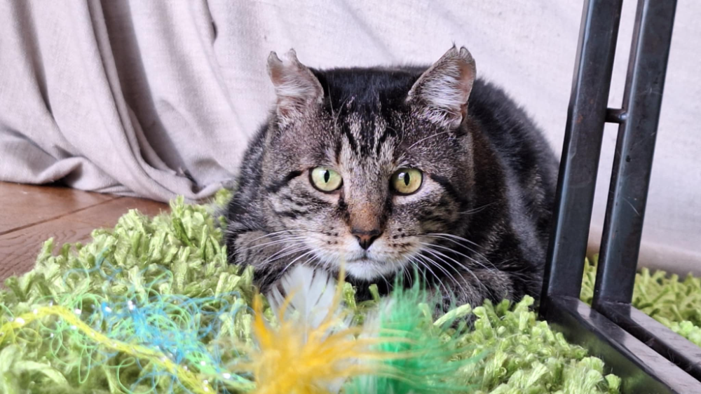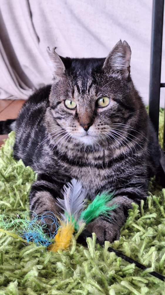 J’apprécie les câlins, mais pas trop longtemps car ce que j’aime par-dessus tout c’est jouer : les balles, le plumeau et la canne à pêche sont mes alliés !