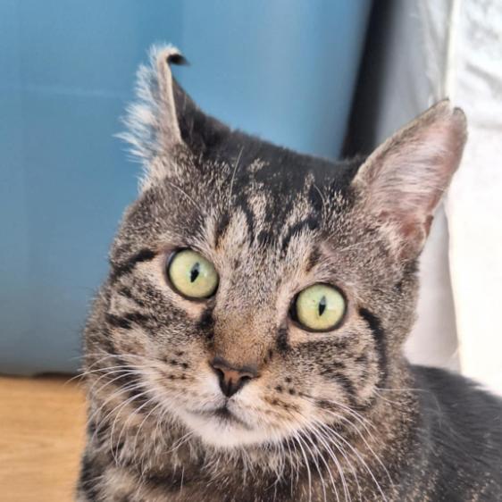 Il est important de vous dire que, mes années d’errance, ont laissé quelques traces sur ma santé : je suis porteur sain du FIV mais cela n’affecte pas mon état de général. Je garde également quelques cicatrices de bagarres sur mes oreilles et la morsure sur la bajoue a laissé une plaque sans poils, qui ne repousseront pas.