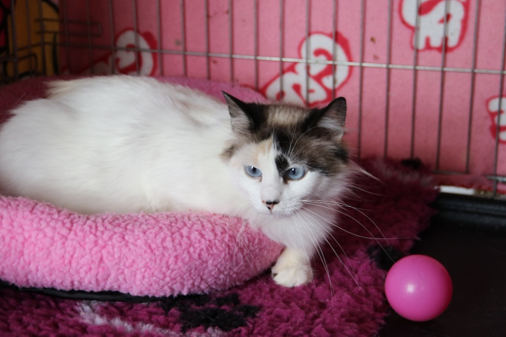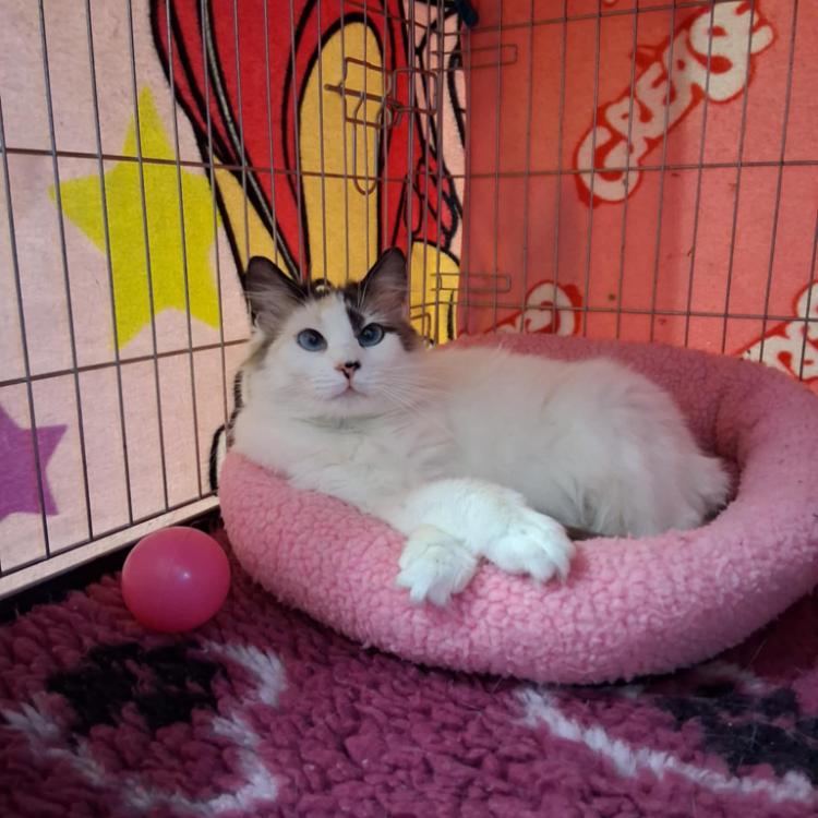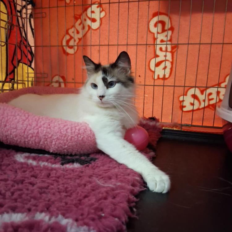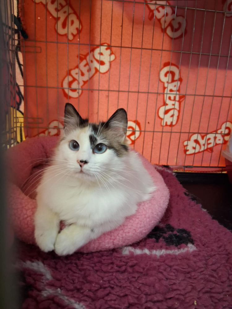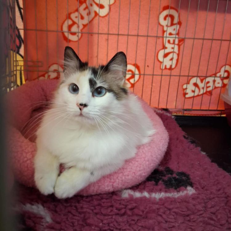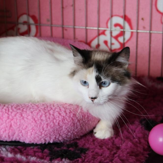 Je suis une petite chatte au regard profond, typée siamoise, avec des yeux d’un bleu presque irréel qui semblent raconter mille histoires...